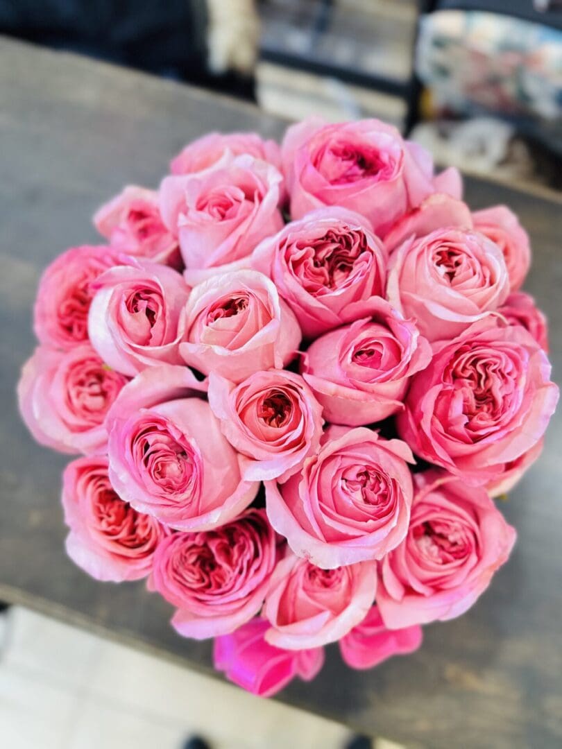 Black Deluxe Box with Fresh Cut Pink Sweet Unique Roses (Deluxe) size hand crafted box, approx 20 to 25 roses. Designed by New York Flowers